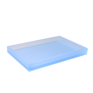 Mike and Ally's Frosted Bath Accessories in Sky are a stunning addition to the successful Ice Lucite Collection. Done with a tinge of blue and a frosted finish, these soothing and contemporary accents are perfect for the modern bathroom suite. Hand cut, glued and polished. 3/8" thick panels. A favorite of architects and designers.