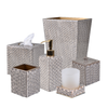 The Mike and Ally Lola Bath Accessories collection is designed to complement modern and classic interiors. Bows consistently offer a wonderful fashion and home decor option, embodying a feminine, romantic, and playful charm. Each piece is accented with handset pave bows. This collection is handmade, custom and is a pure definition of slow fashion. The bow trim can be done in either Gold or Silver trim.