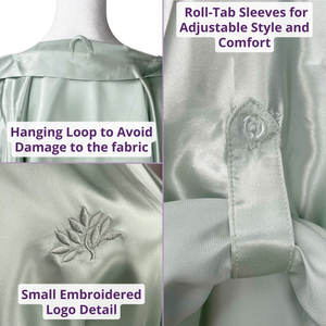 Made from the highest-quality 100% silk in an indulgent 22 momme weight, this kimono-style luxury robe is a dream. Unlike satin robes (usually made from synthetic materials such as polyester) silk robes are made from a natural protein-rich fiber that is breathable, gentle on the skin, and helps with issues like dryness and sensitivity. Mulberry Park Silks robe features convenient hanging loops, interior ties for secure closure, and an external belt for a perfect fit. Its special feature, a sewn-in tab with a button closure to keep each sleeve up when needed, makes this one of the best silk robes on the market.