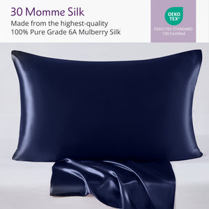 A 30 momme Mulberry Park Silks pillowcase powers up your beauty routine by keeping your hair and skin healthy and beautiful while you sleep! Made from the heaviest-weight silk we sell, these pillowcases deliver all the benefits of sleeping on silk coupled with the most luxurious feel. This natural silk pillowcase locks in moisture while providing a gentle, friction-free sleep surface that nourishes your hair and skin all night long. Your hair will stay moisturized and manageable while the smooth silk tames tangles and prevents breakage and frizz. At the same time, silk keeps your delicate facial skin hydrated and protected from creases, sleep wrinkles, and dryness. Wake with the shiny, soft tresses and the well-rested skin you deserve.