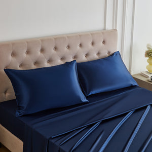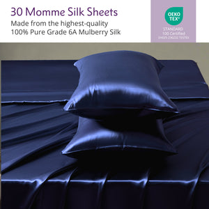 Indulge in the ultimate luxury with our premium 4-piece silk sheet set, meticulously crafted from our heaviest weight offering - 100 percent Grade 6A mulberry silk in a luxurious 30 momme weight. Our densest silk weave envelops you in opulence, transforming your nightly rest into a beauty ritual that pampers both skin and hair. These extraordinary sheets redefine the art of sleeping in luxury.