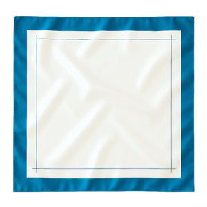 Discover the ultimate blend of function and fashion with Mulberry Park Silks' printed border silk scarf bandana. Crafted from 100% pure 19 momme Mulberry Charmeuse silk in natural ivory, this 36" x 36" square scarf is framed with a bold color border and a refined line detail that crosses elegantly at each corner. Available in five hues, from subtle pink to bold blue, this design takes our best-selling solid scarves to the next level—timeless, chic, and ready for every occasion.