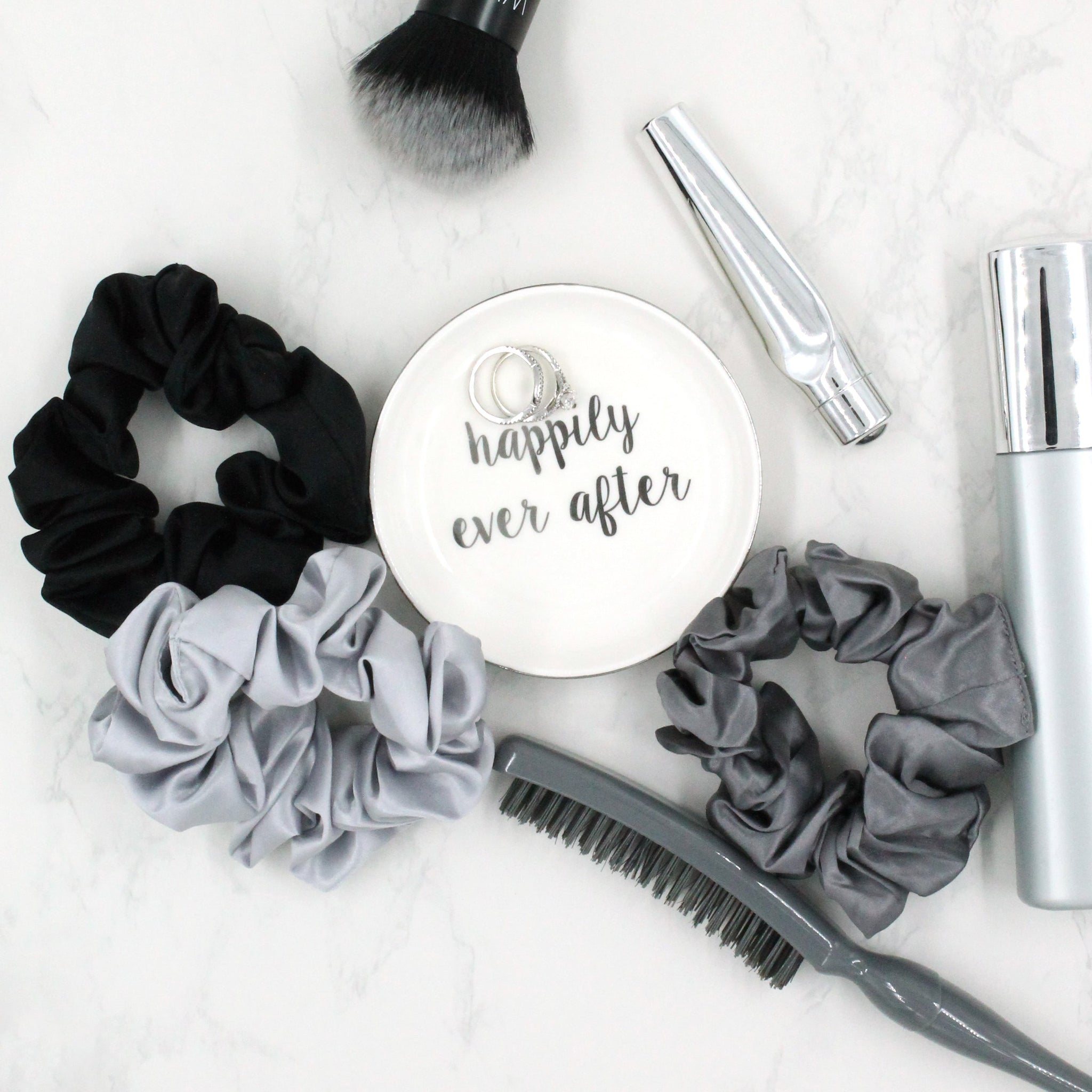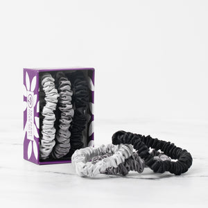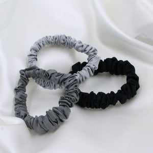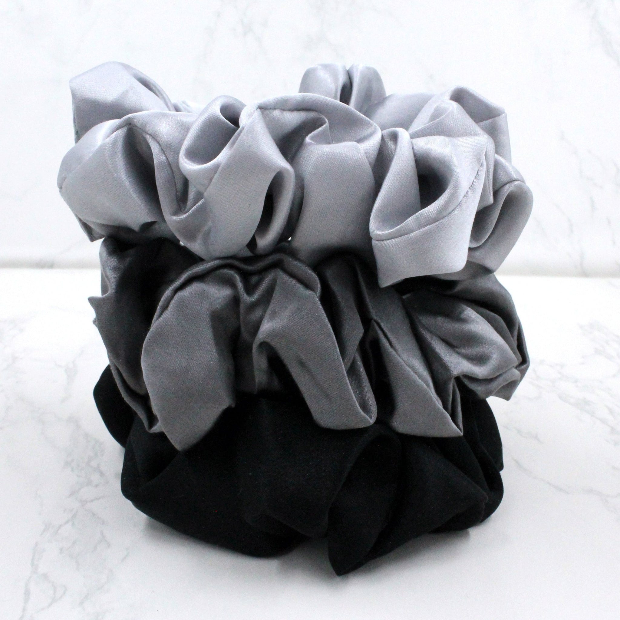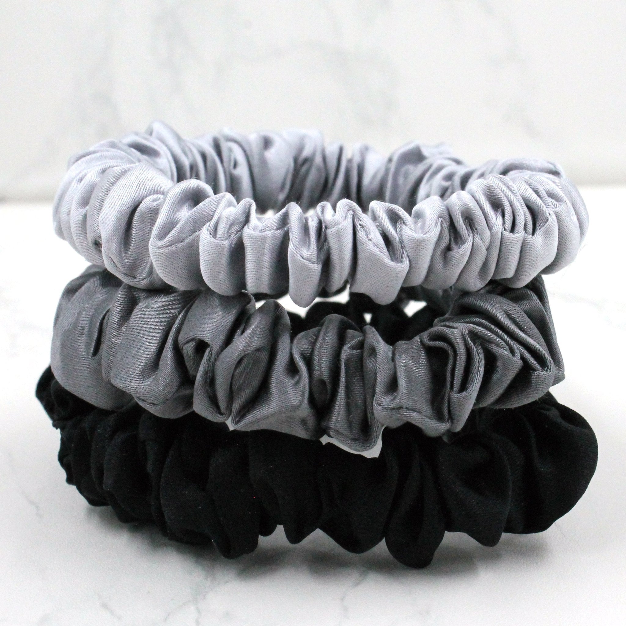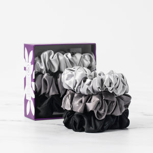 Mulberry Park Silks Pure Silk Scrunchies - Black, Silver, Grey