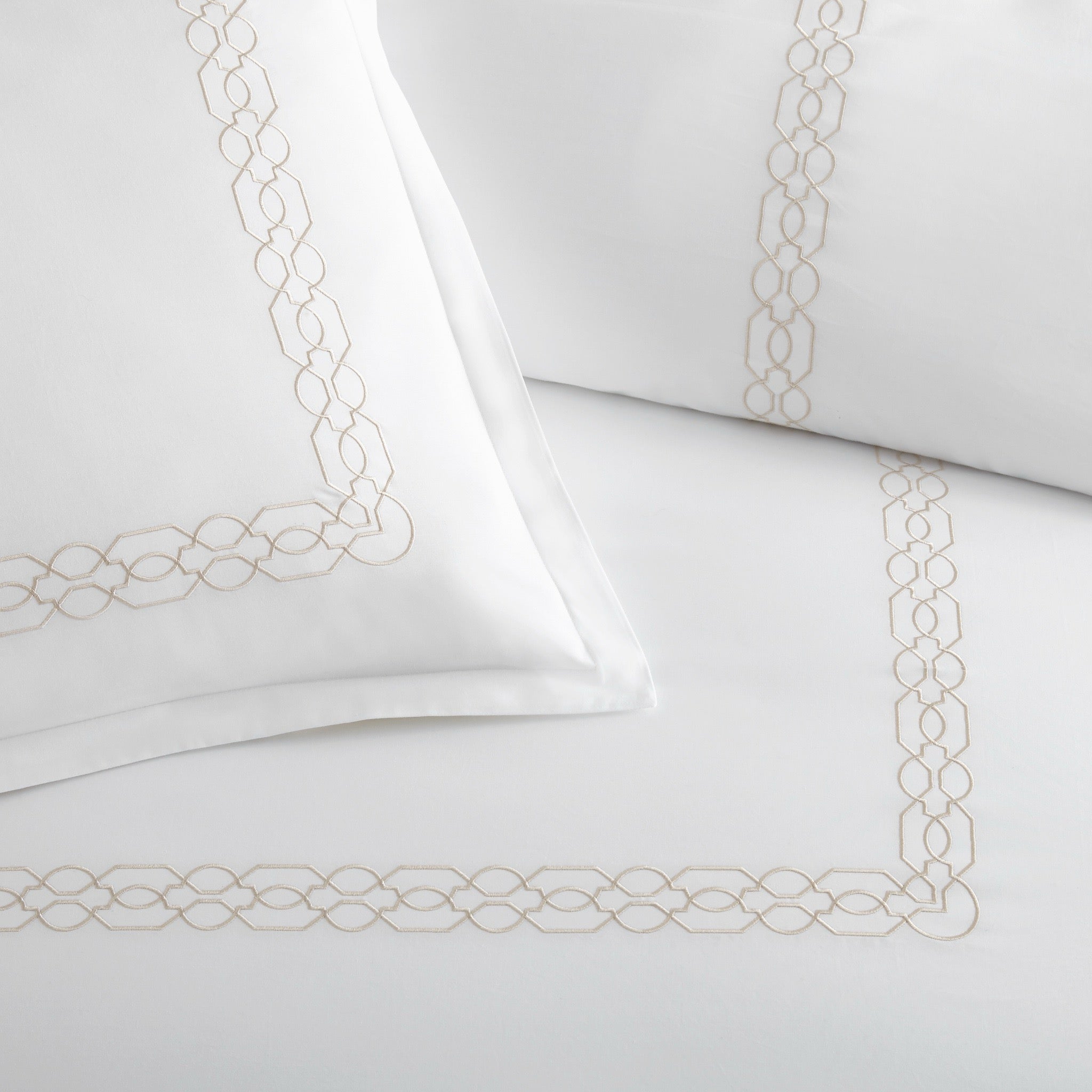 Taking its cue from classic hotel beds, the Peacock Alley Embroidered collection exudes timeless appeal. Embellished with a geometric embroidered border in the Filigree motif, it introduces a refined tracery design that pairs beautifully with an array of patterns.