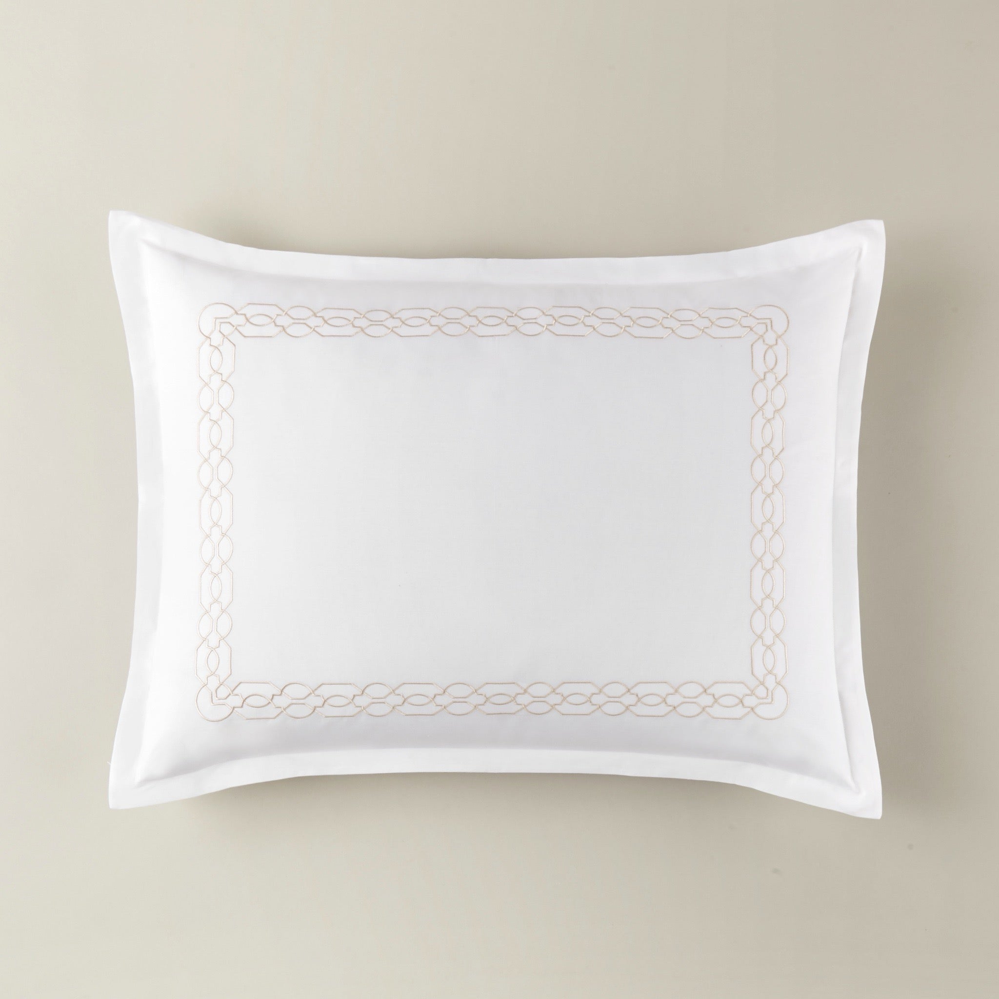 • Shams have a 1” flange on 4 sides, a simple stitch detail, and an envelope closure centered on the back.