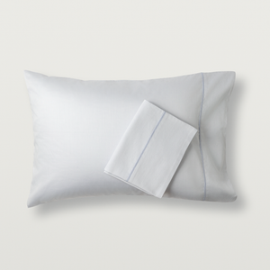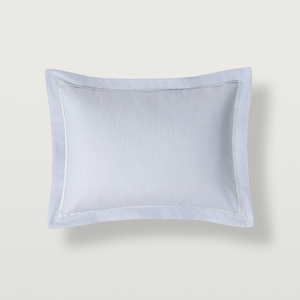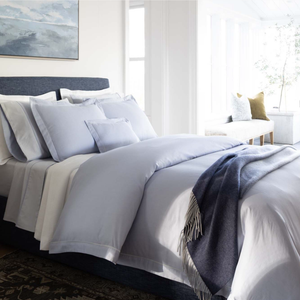 Duvets and shams feature the darker chambray side outward, while sheets and pillowcases showcase the lighter sateen face. Finished with a tailored mini-flange for crisp definition, Alistair lends understated distinction to any bed.