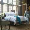 Scandia Home’s Alistair Bedding brings instant ease with a quietly dapper sensibility. Woven and finished in Italy using heritage techniques, its long-staple cotton sateen is transformed into a soft, silken fabric with a refined, fluid hand. A chambray reverse introduces subtle textural contrast, enhancing the collection’s dimensional appeal.
