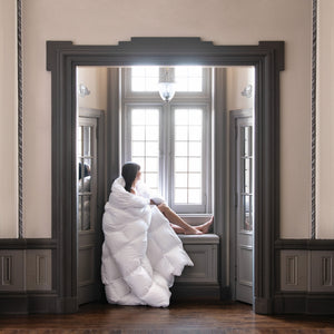 "From the rare 800-850 fill power Siberian white goose down to the exquisite Austrian nano-sateen shell, Chamonix is crafted from the finest components. The baffle box construction ensures perfect distribution of the down to eliminate cold spots while maintaining maximum loft. It's remarkable how something so light can provide such incredible warmth, adapting perfectly to your body temperature throughout the night. If you recognize that quality sleep is an more than a luxury, Chamonix is an absolute essential.” — Helena, Associate Brand Manager, Fine Linen and Bath