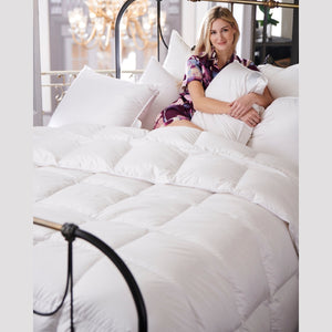 Esteemed the world over, Scandia Down comforters offer unrivaled luxury. They feature clouds of premium white down, covered in silky soft, high-thread count ticking and finished with meticulous tailoring. Scandia Down comforters are available in a range of weights to suit individual sleeping preferences and seasons. Each comforter is generously sized with baffle-box construction to alleviate cold spots by keeping down from dispersing. Scandia comforters are hand-filled and crafted in the United States from the finest imported materials and fabric. The down styles are accompanied by a Certificate of Authenticity and the Scandia Down Limited Warranty.