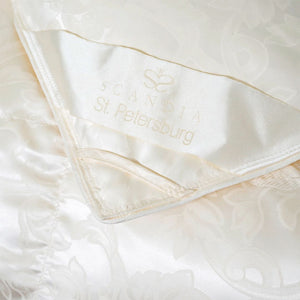 The St. Petersburg comforter is Scandia Home's most luxurious and regal offering. Scandia Home sourced the finest of Siberian white goose down to craft the most premium quality down comforters. Covered in superior German silk damask and with an 850-900 fill-power, resulting in a sublime ratio ensuing supreme fluff and loft. Heirloom-quality comfort is the ultimate refinement for your home. Handcrafted in the United States, the St. Petersburg comforter is accompanied by a certificate of authenticity and service for a lifetime.