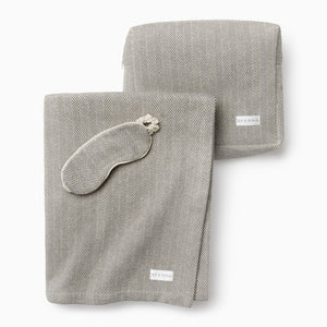 The Sferra Celine Luxury Travel Set brings a sense of calm and polish to life on the move. Woven from 100% cotton with a refined herringbone pattern, each piece is designed to balance function and softness. The set includes a pouch with luggage strap, a throw finished with turned hems, and a matching eye mask for rest on the go. Available in charcoal, mushroom, and navy, the Celine Luxury Travel Set is thoughtfully finished inside and out—offering a travel experience that feels considered, composed, and quietly luxurious.