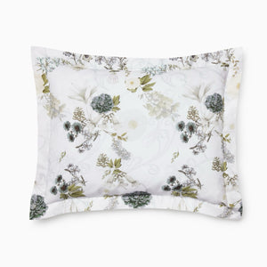 There’s a hush to Sferra Incanto Duvet Cover and Shams, as if the flowers themselves are mid-whisper. Printed on smooth Italian percale, its delicate botanicals bloom in soft, painterly strokes—each petal and leaf rendered in shades of blue, green, and ivory that feel gathered from a dream. The composition of Sferra Incanto is airy yet intentional, a careful arrangement that brings the calm of a garden indoors.