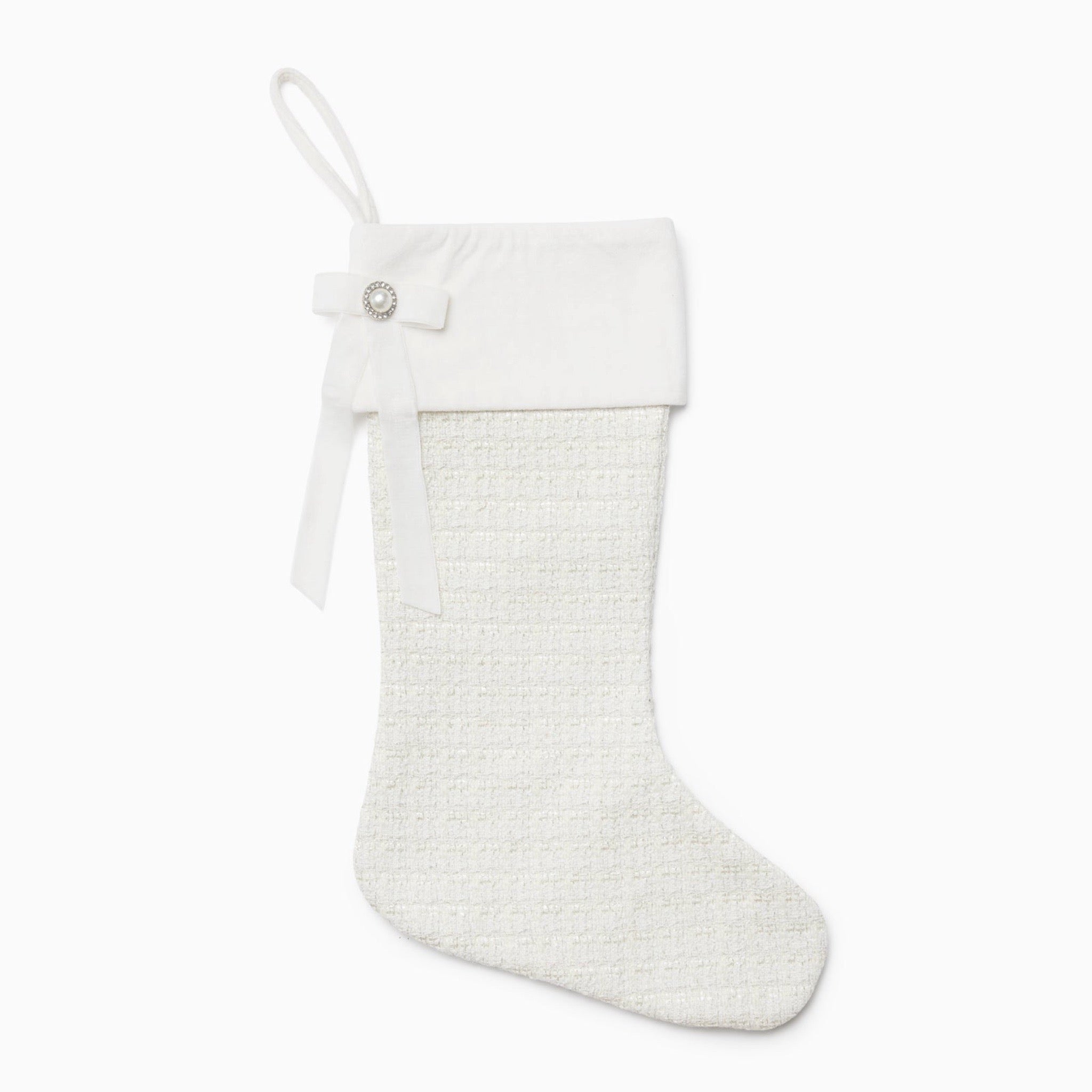 The Sferra Jingle Holiday Stocking blends boucle texture and velvet elegance for a timeless, nostalgic holiday charm. Sferra’s holiday stockings are designed to conjure the spirit of holidays gone by—full of wonder, warmth, and quiet tradition. With every detail, they evoke the nostalgia of wintry mornings, the glow of tree lights, and the anticipation of gifts to come. Each stocking is crafted to become a lasting piece of seasonal storytelling—hung with care and cherished year after year. Jingle is crafted from a yarn-dyed boucle body and finished with a solid velvet cuff, combining cozy texture with a refined contrast. It’s a festive classic that feels both playful and polished.