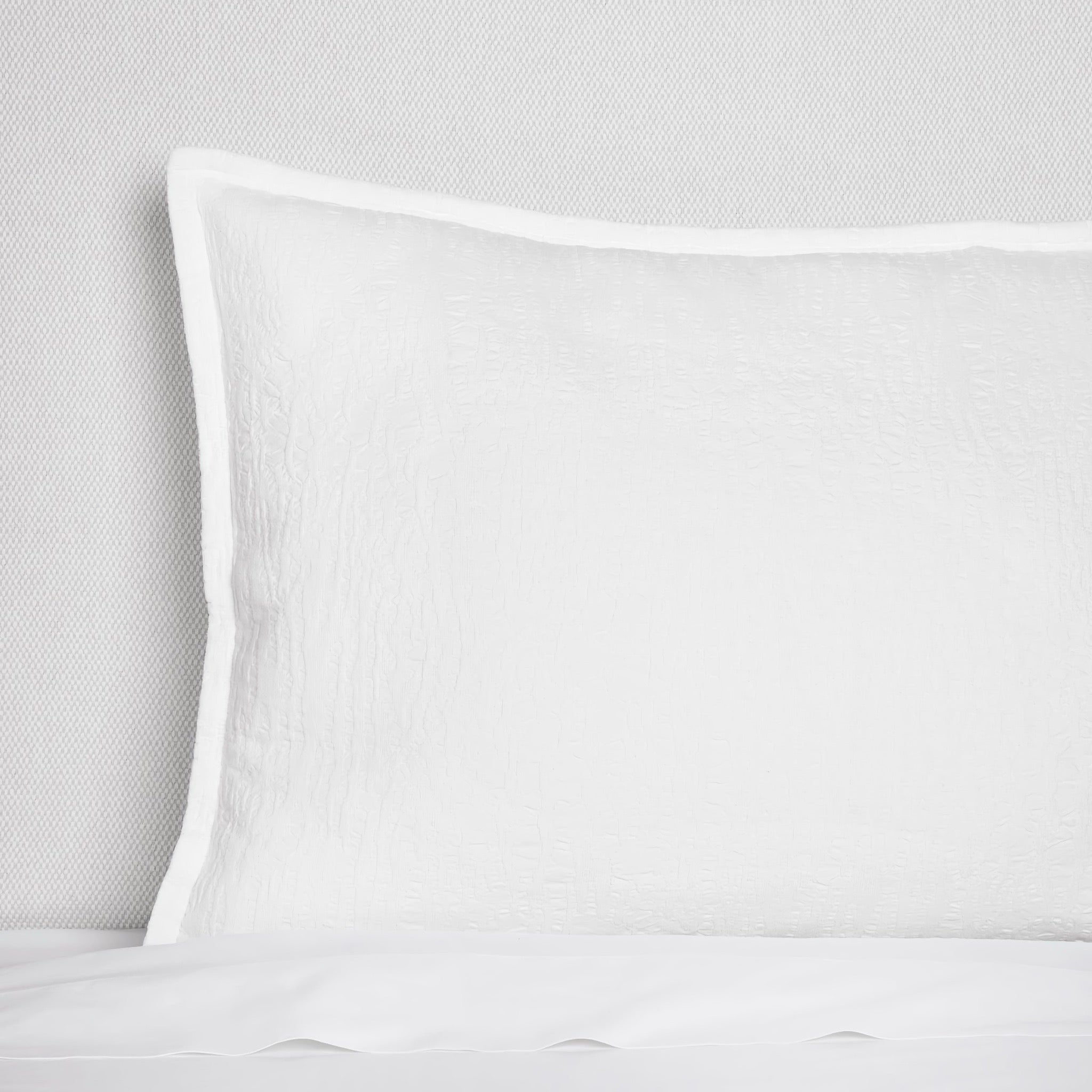 There is an effortless elegance to the SFERRA Sabino Coverlet and Shams that invites you in. Crafted from 100% cotton and stone-washed for a vintage, heirloom hand, the fabric reveals a gently crinkled texture—soft against the skin and inherently relaxed. The clean geometry of abbreviated flanges and precise double-needle stitching introduces subtle structure, balancing casual comfort with quiet refinement. Presented in versatile shades of white and oyster, Sabino serves as a year-round layer, adding both tactile depth and understated sophistication to any bedscape.