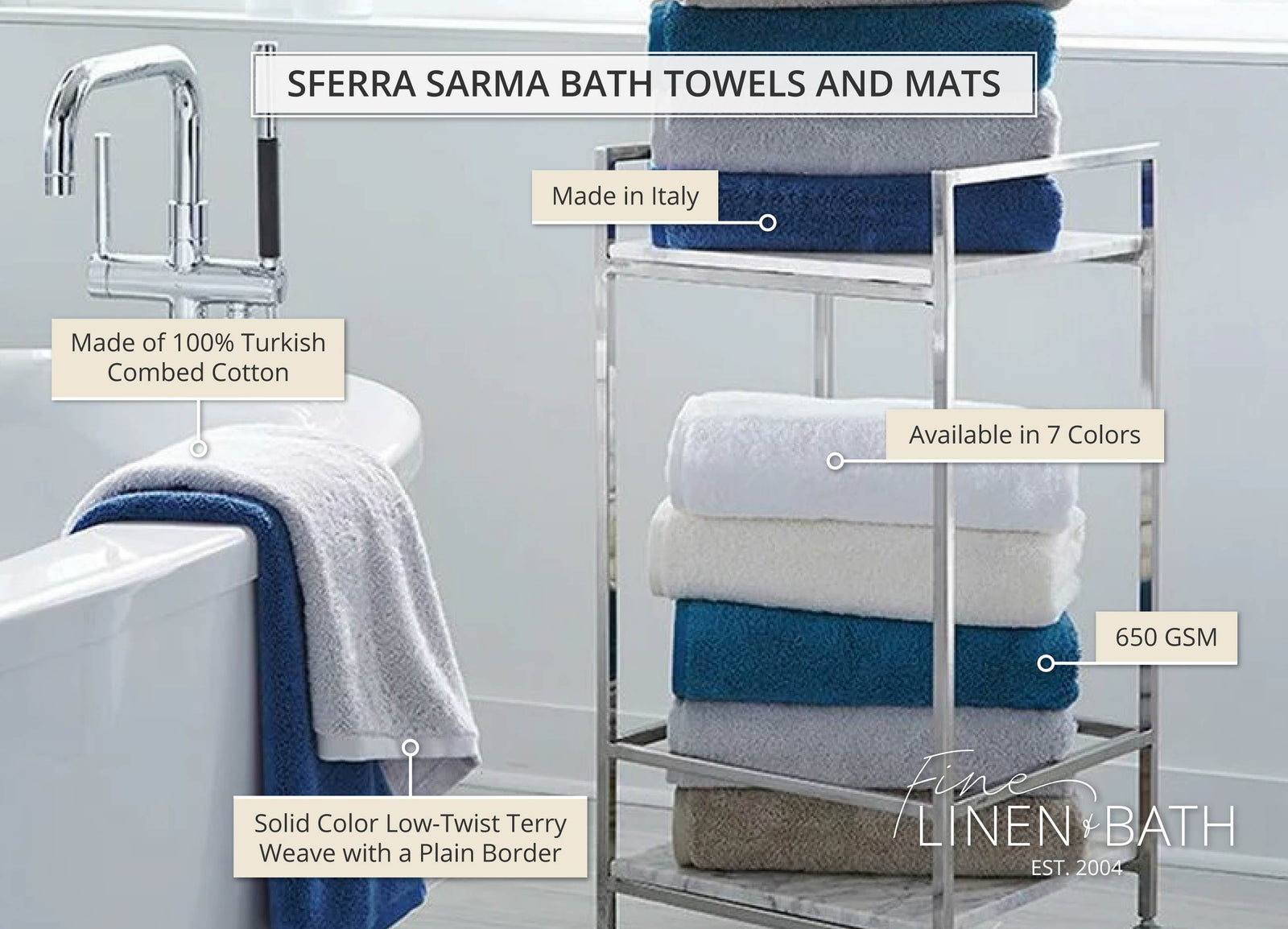 • Material: SFERRA Sarma Bath Towels and Mats are made from 100% combed cotton.
