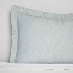 Palm tree fronds swaying in a gentle sea breeze. This tranquil scene inspires the serene beauty of Sferra Selini. Crafted from Italian-woven long-staple cotton in a luminous sateen jacquard weave, its soft silver sage palette evokes the quiet elegance of tropical retreats, where nature's calming presence is woven into every leaf.