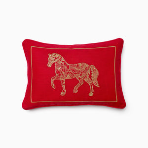 In Chinese tradition, the horse symbolizes vitality, elegance, and an unyielding spirit. The Sferra Year of the Horse Decorative Pillow is a limited-edition pillow that captures that energy through intricate embroidery, where every thread reflects movement and intention. Set against a linen canvas, the motif pays homage to heritage with a contemporary hand. Framed with self-piping and finished with a hidden zipper, it brings a sense of celebration and artistry to the home.