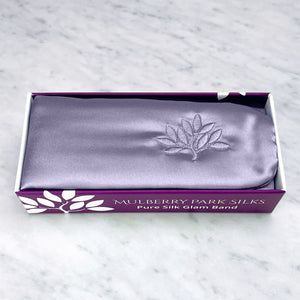 Pure Silk Glam Band: A Beauty Essential. If you've spent any time with Mulberry Park Silks products, you know that they’re all about how silk benefits your hair and skin. Now, let them streamline the rest of your skin-care and makeup routine with their handy, stylish accessory: pure silk beauty bands. The Mulberry Park Silks Glam bands are perfect for holding hair back during workouts, skin care treatments, and daily makeup application and removal. While a traditional makeup headband can tug and damage delicate regrowth at the hairline, their pure silk beauty headband is gentle, preventing breakage and damage. Silk also helps your hair and skin retain moisture and keeps your pricey hair and skin products where they belong! This luxurious spa headband with Velcro closure feels secure, yet smooth enough to slip in and out of hair without tugging. Mulberry Park Silks’ 100% pure Grade 6A silk headband is handmade and makes a great gift. This product is made of the highest quality, Grade 6A Mulberry silk. As a silk-loving company located in Branford, CT, we know the power you feel when you have a great hair day!