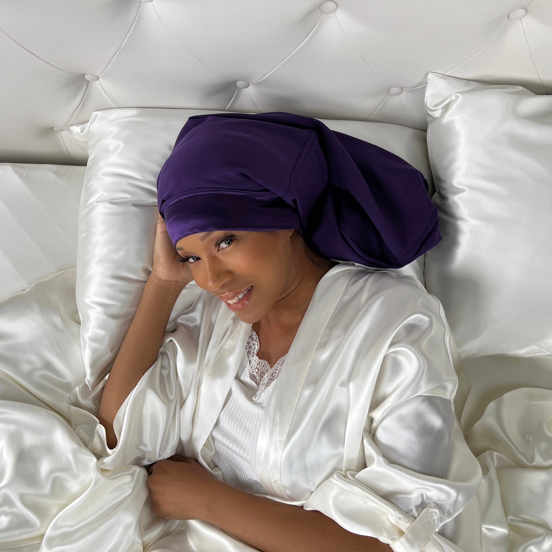 Treat your hair like royalty and pamper it with 100% Mulberry Silk Sleep Bonnet. Not only will you wake up to gorgeous hair, but you'll also add a touch of elegance to your daily routine.