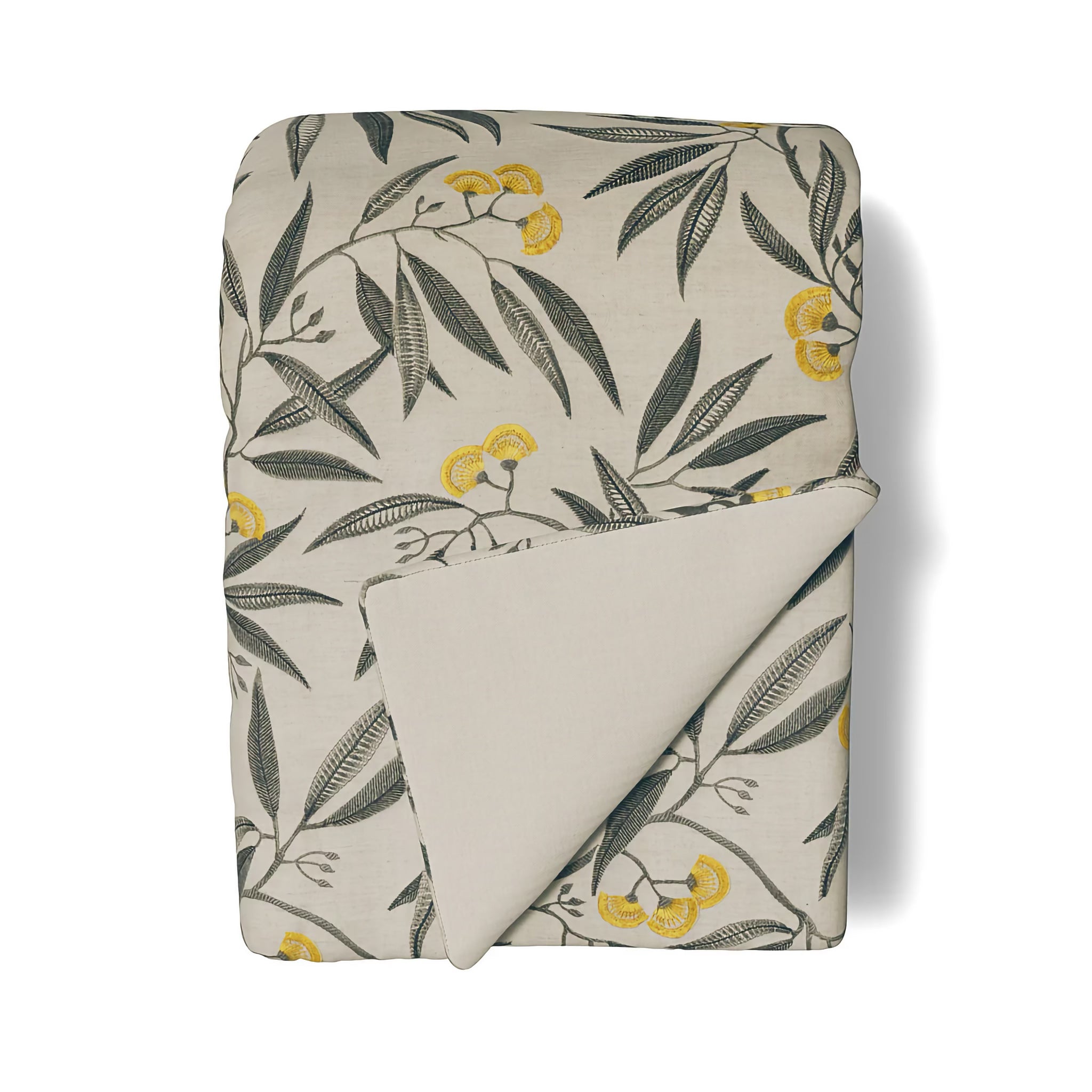 The Met x Ann Gish Alyssum Throw and Decorative Pillow is inspired by an Egyptian floral plaque. Alyssum's delicate, fringed flowers and grey leaves are embroidered onto a herringbone ground, creating a refined and timeless design.