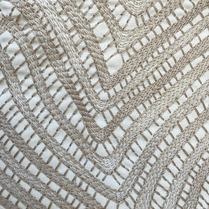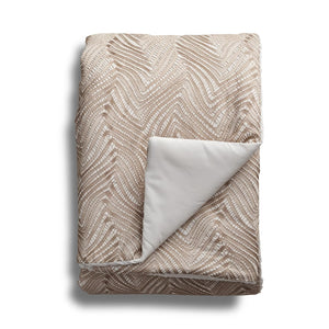 Stunning embroidery inspired by a Venetian goblet from the late 17th century in the “Vetro a retorti” style. This Italian glasswork involves the glass being blown with canes that are twisted to form spiral patterns. The Met x Ann Gish Retortoli Throw and Decorative Pillow beautifully translate this intricate technique into luxurious textile design.