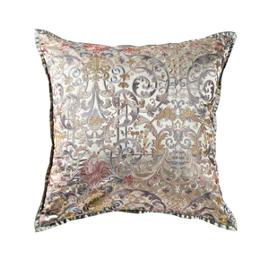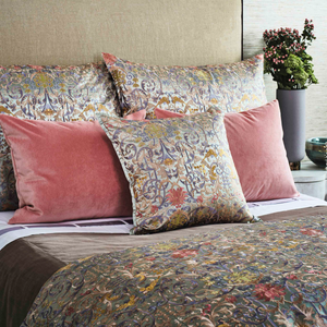 Inspired by a document textile from late 17th century Venice, The Met x Ann Gish Venezia Duvet Cover and Decorative Pillow embroidery is lush with color and pattern.