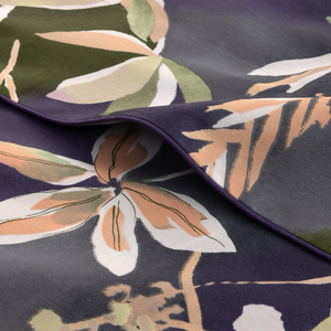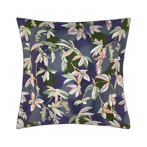 The Yves Delorme Brume collection paints an interior landscape in poetic tones, where an imaginary flora emerges in a breath of mist and ink across subtly luminous cotton sateen.