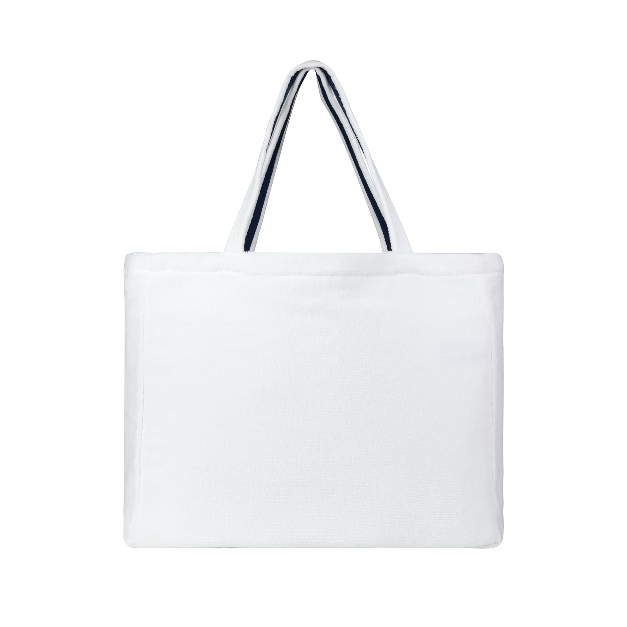 The Yves Delorme Croisière beach bag perfectly coordinates with the Croisière Beach Towel and Beach Pillow, making it the best beach accessory.