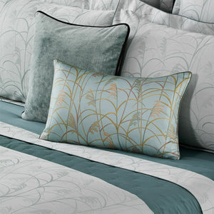 Between architectural lines and botanical softness, the Yves Delorme Graminee Bedding Collection draws inspiration from the Art Deco era to sketch a luminous landscape, where the geometry of grasses is subtly woven into a serene, contemporary pattern.