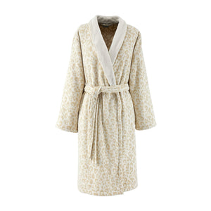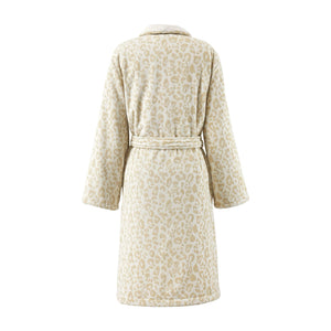 The Yves Delorme Leopard Bath Robe is a play of textures and wild spirit, revealing a snow leopard motif woven in sculpted velvet jacquard. Made from organic cotton, the robe offers enveloping softness.