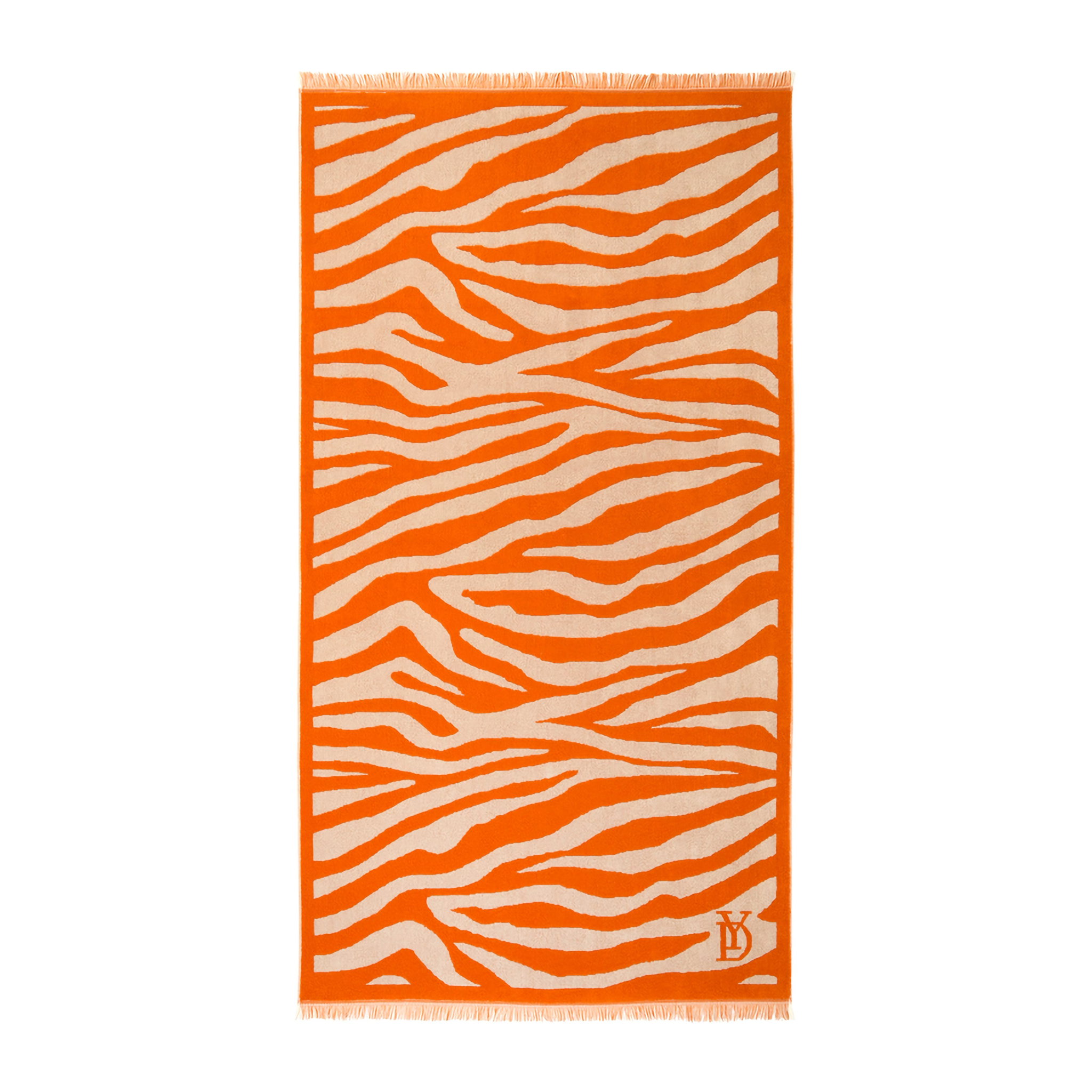 Bring a bit of the wilderness to the beach with your Pampa beach towel by Yves Delorme. Made with 100% organic cotton for a soft, comfortable feel, the jacquard design is covered in an animal print, topped with a fringed trim.