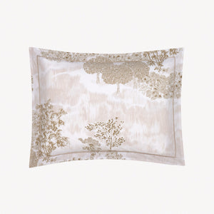 The Yves Delorme Paysages Bedding Collection showcases the poetic elegance of the undergrowth, etched onto exceptional organic cotton batiste.