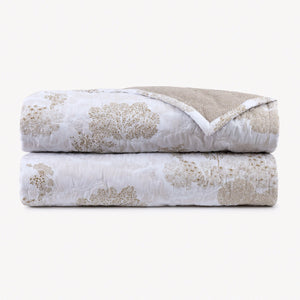 Printed on a batiste of organic long-staple combed cotton, this set combines the finesse of its 200 thread count weave with the airy, breathable softness of cotton—ideal for a light sensation. The coordinating quilted coverlet will bring a layer of warmth to your bed.