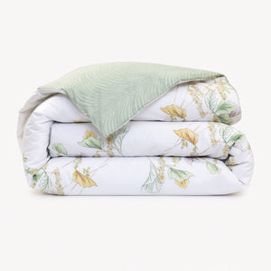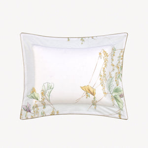 Yves Delorme Pollen Bedding Collection is a light and poetic print, where hazel blossoms appear to gently scatter their pollen across the fabric in a delicate rhythm, creating a soft and natural atmosphere. Made in France, this bedding collection reflects Yves Delorme's textile excellence and commitment to sustainable production, combining exceptional craftmanship with a respect for noble materials.