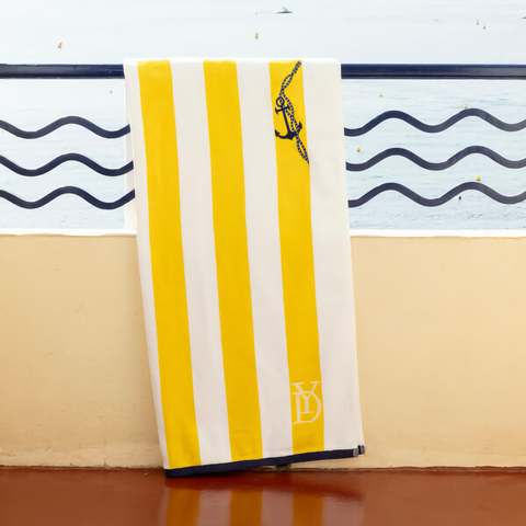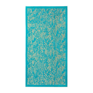 A vibrant beach towel design by Yves Delorme covered in thick jungle foliage with a hidden leopard. Made with 100% organic cotton with a luxurious velvet finish, the bi-colour jacquard design is trimmed with a contrasting and owing to its bold colour palette, it will stand out at the beach or by the pool.